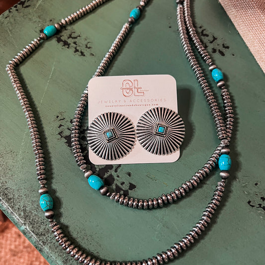 Long Concho Post Turquoise Earrings