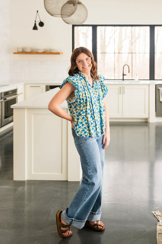 Blue Floral Flutter Top