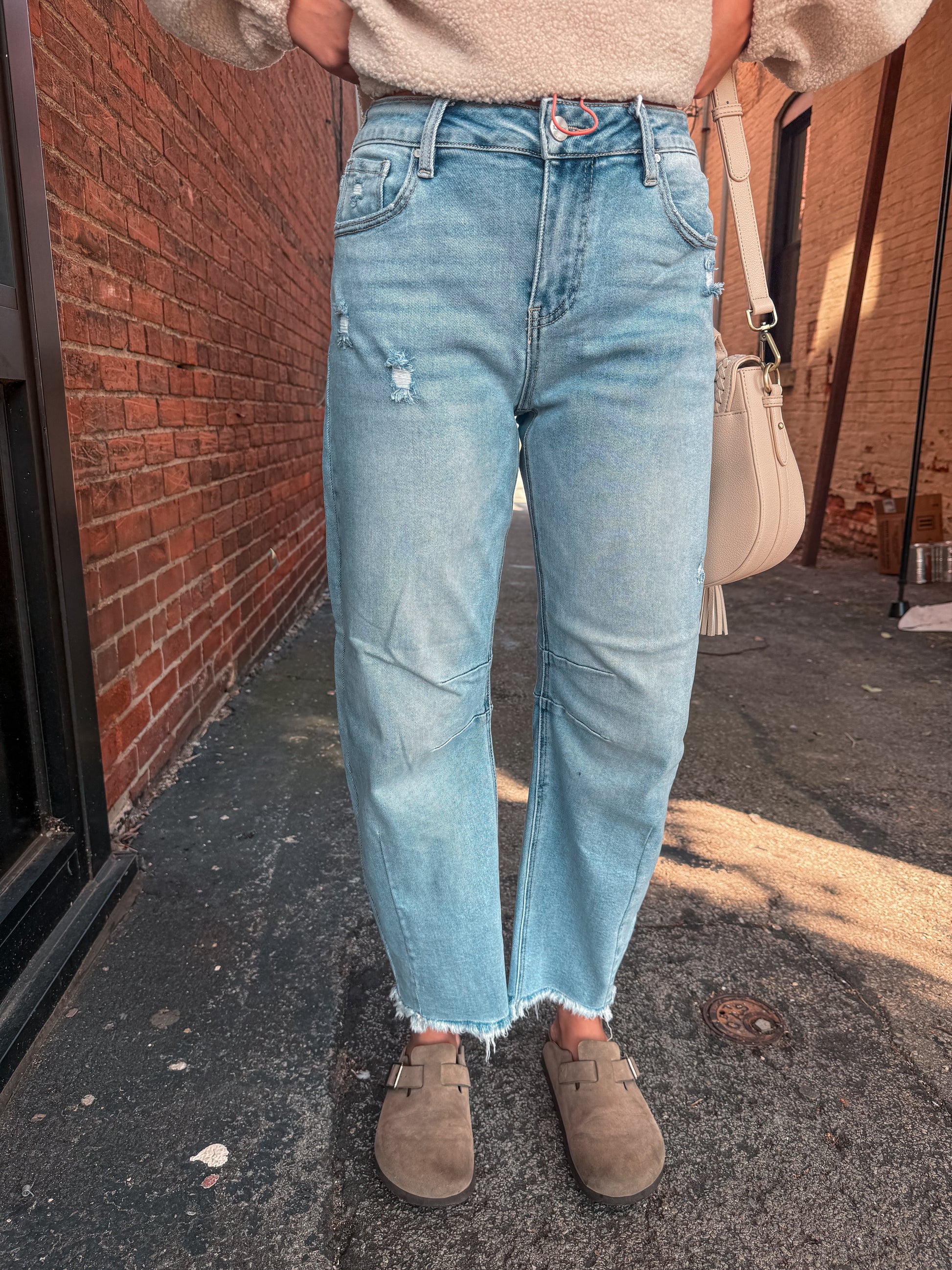 Who doesn’t love a good pair of stretchy barrel jeans? We sure do!! Soft, comfy, stretchy, adorable. Checking off all the boxes! Style with your favorite sweater or shacket this fall and have the perfect little outfit!