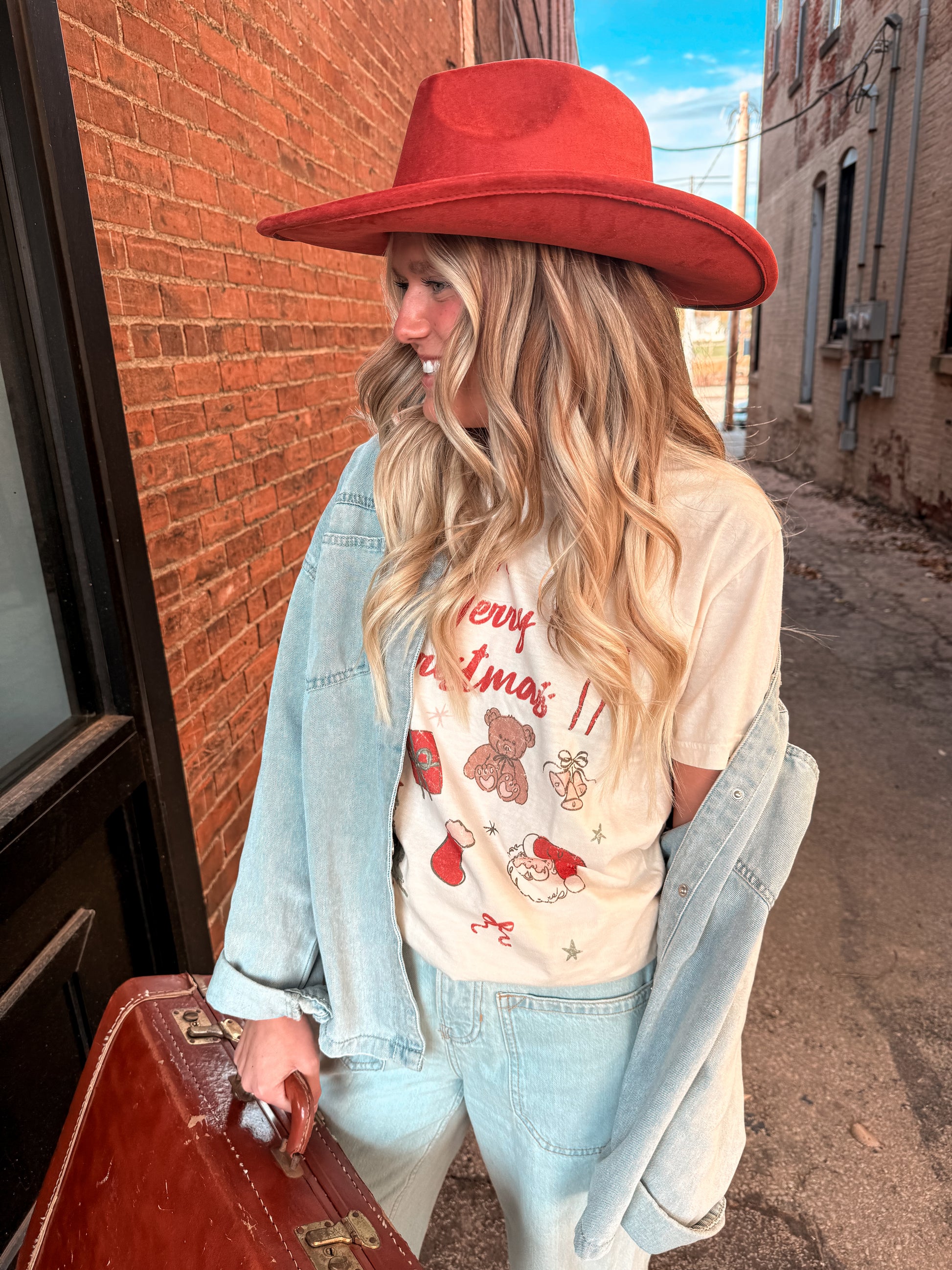 We love a good holiday graphic. Simple, cute and festive. Style all holiday season long with your favorite denim, loungewear bottoms, or skirt!