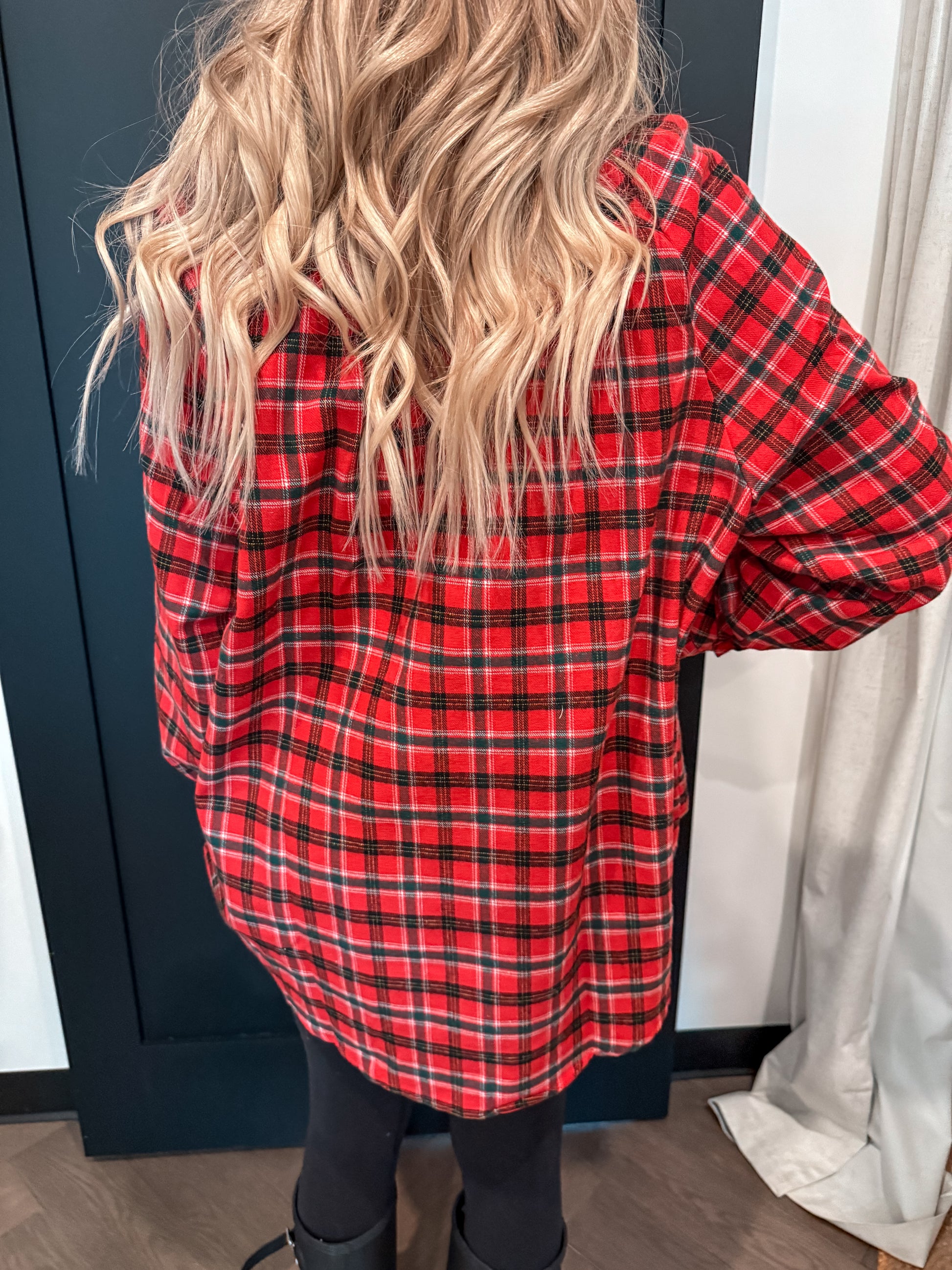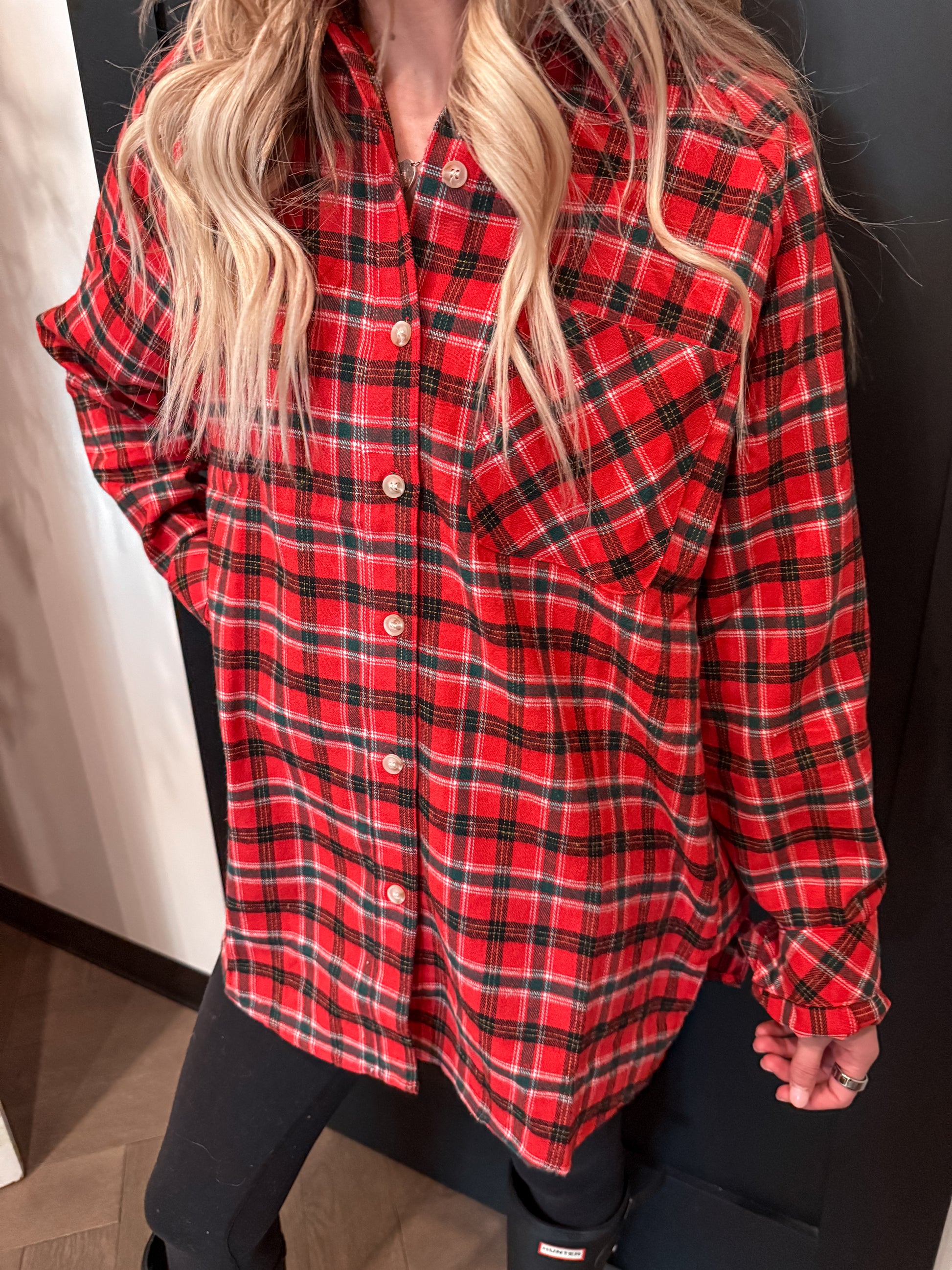We all know flannels are so easy to style! Dress them up or down, making the perfect layering pieces! Soft and cozy this Red Hot flannel is perfect for the holiday season. Loose fitting and adorable.