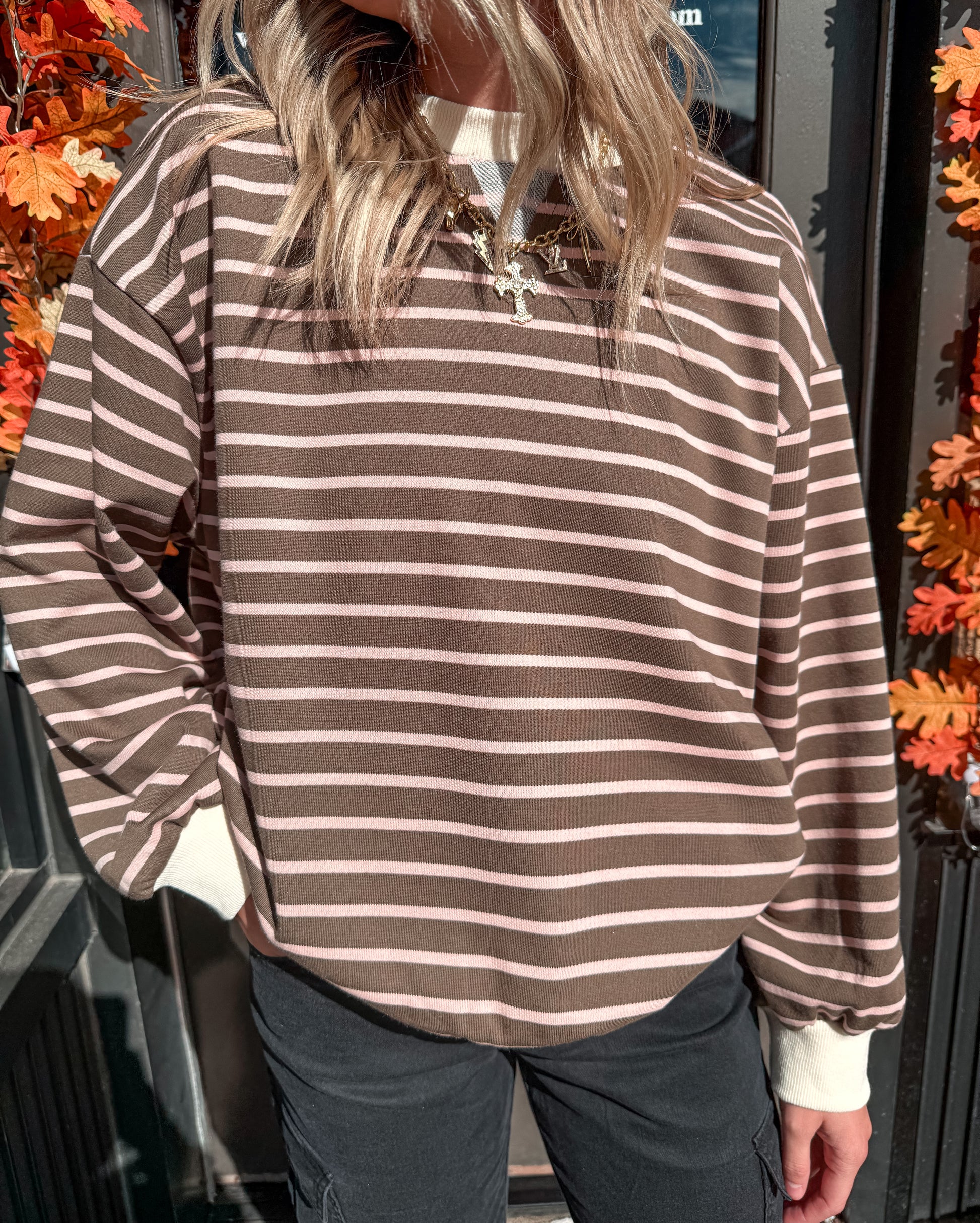 Cute and casual! We are loving the color combo on this top. Style with your go to leggings or your favorite blue jeans.